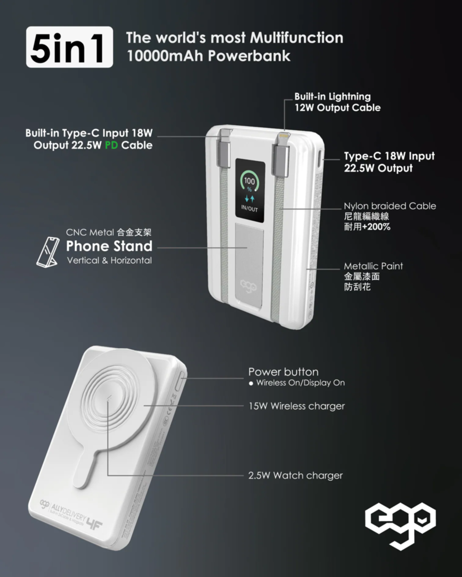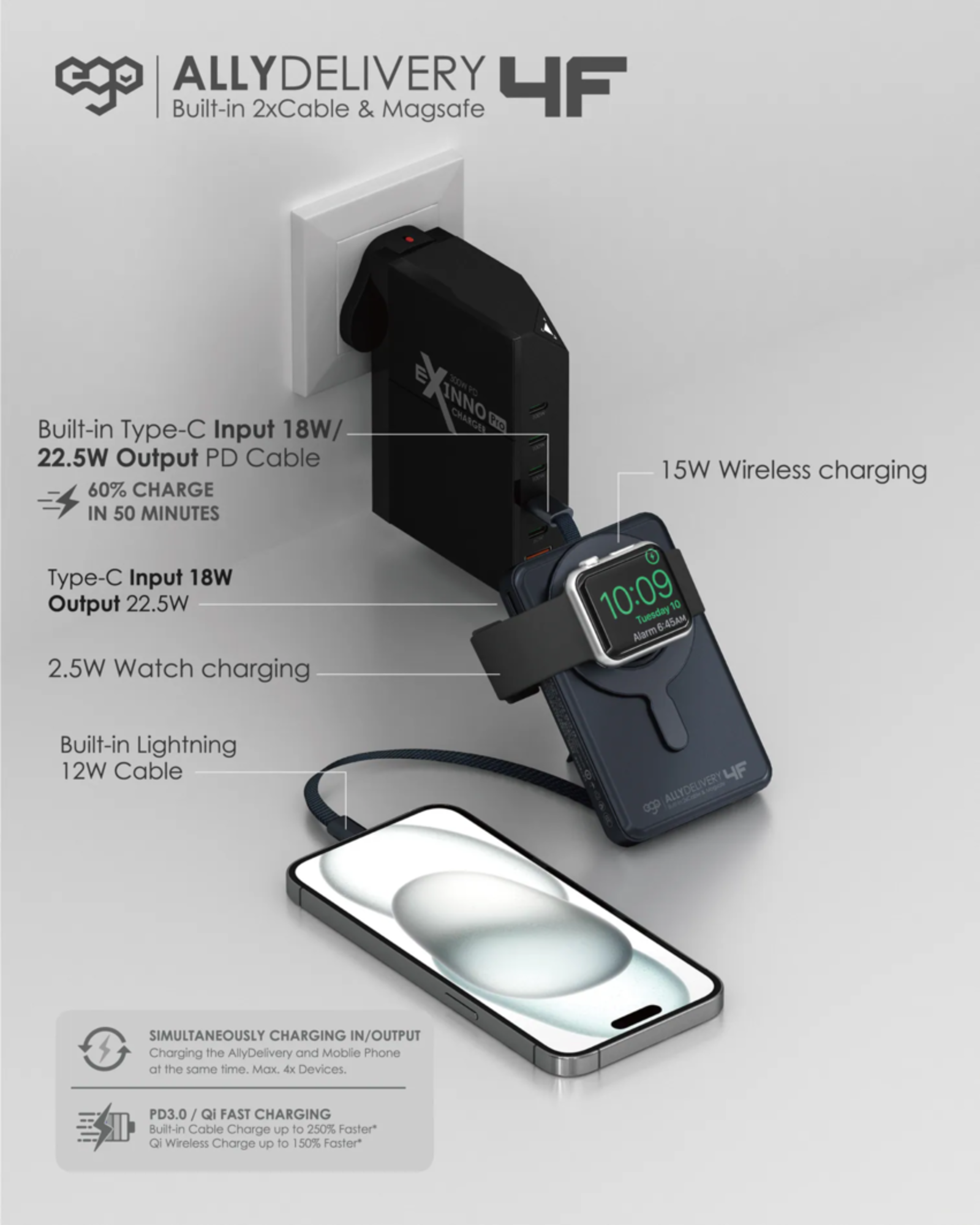 AllyDelivery 4F @3C認證版.Magsafe 10000mAh 6in1 移動電源