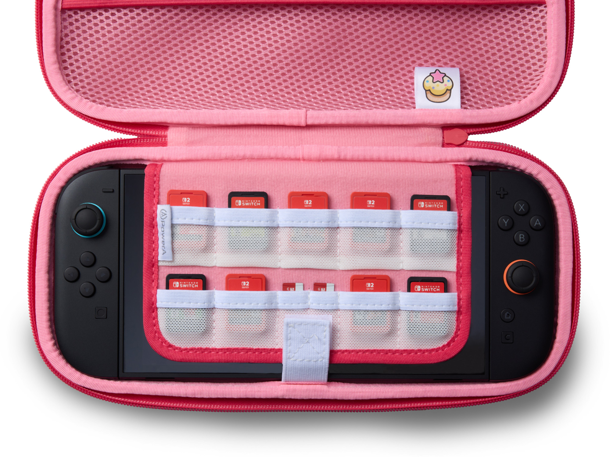 配件收納空間:網狀口袋可收納 Joy-Con 2 腕帶、耳機和充電線等小型配件。